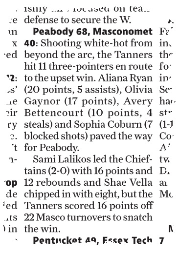 ![]() Peabody | 14 | 16 | 19 | 19 | 68 |